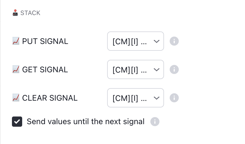 **GET SIGNAL** - A source that takes the last value from the stack, returns it to the output, and removes it from the stack.