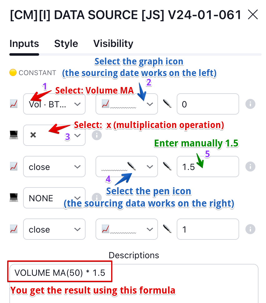 The DATA SOURCE module is like a preparation table for a chef, where they can chop ingredients and mix them before cooking the dish. Here you can take data from other indicators, combine or modify them using mathematical operations, before using them in the main module CONDITION MANAGER or any other module (even another DATA SOURCE) to create rules (RULE) or constants (CONSTANT). This versatile DATA SOURCE module can be used as a memory location or stack.