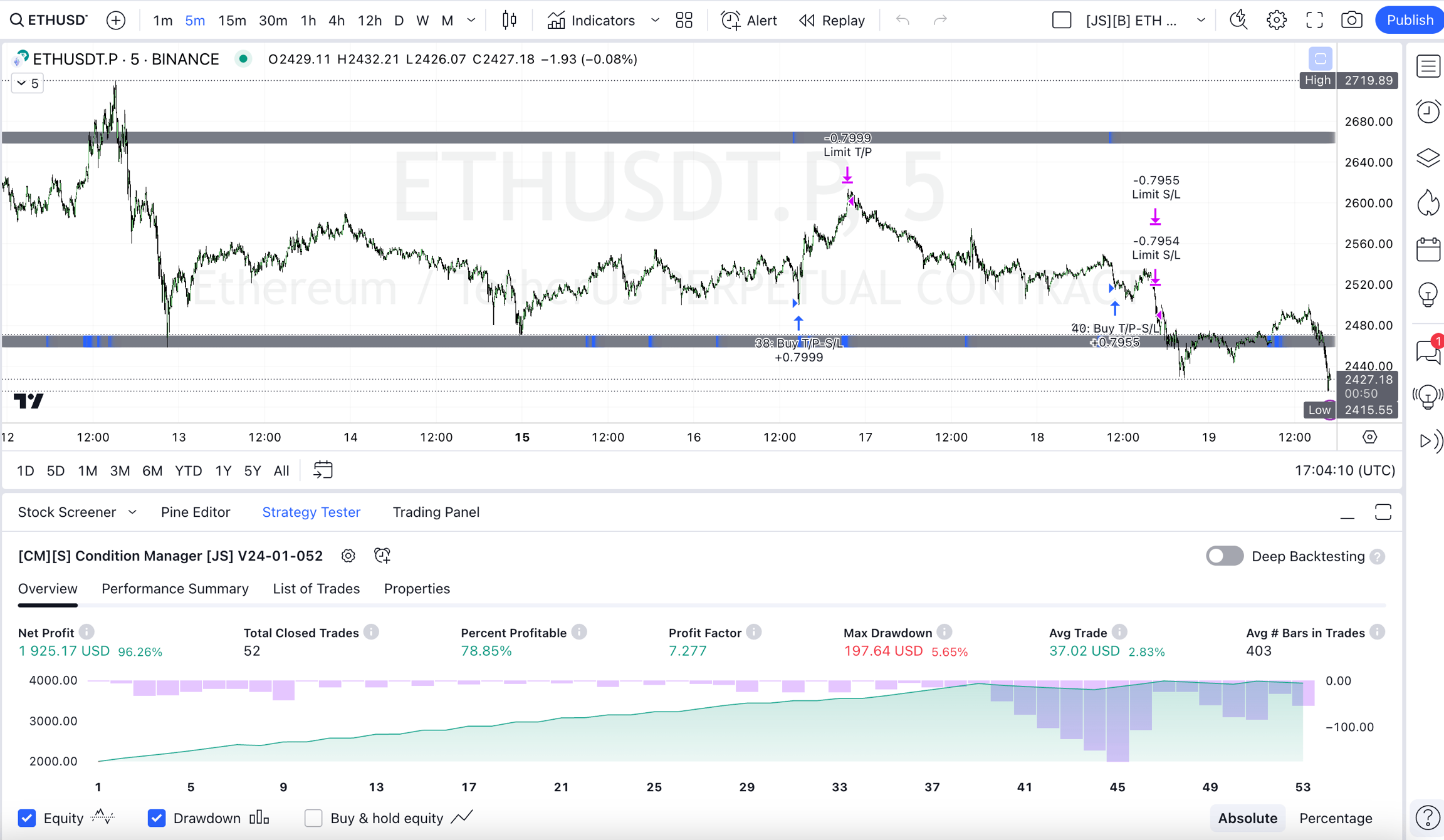 Основное преимущество CDZV заключается в возможности использования широкого спектра индикаторов: как стандартных для TradingView или своих собственных, так и тех, что были созданы сообществом. Это дает свободу в выборе инструментов для формирования стратегий.