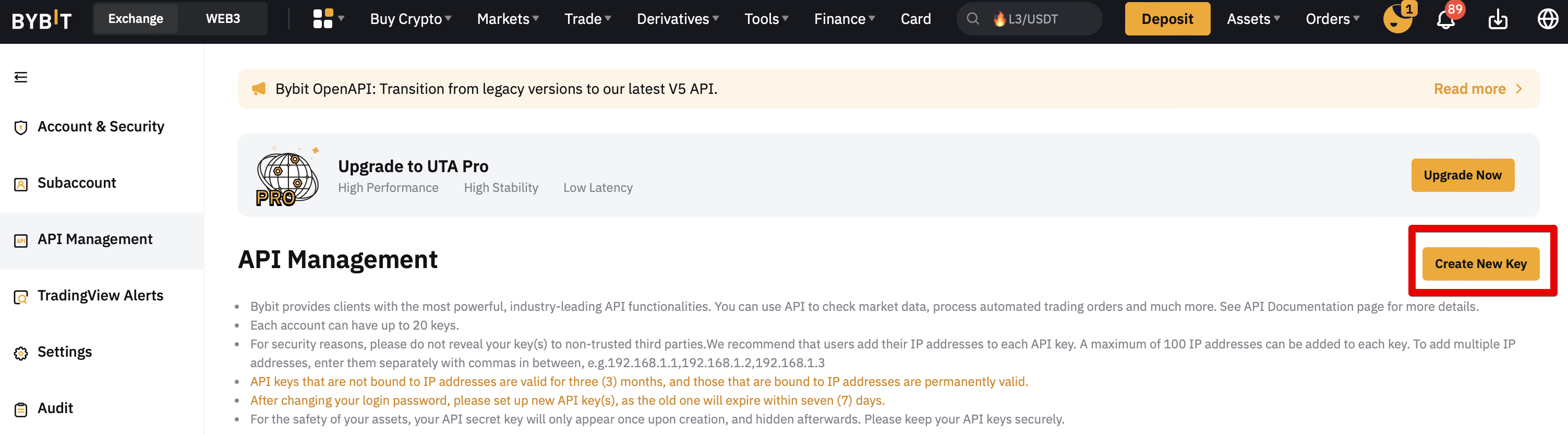 1. Перейдите в раздел создания API-ключей: <https://www.bybit.com/app/user/api-management>\ <br>